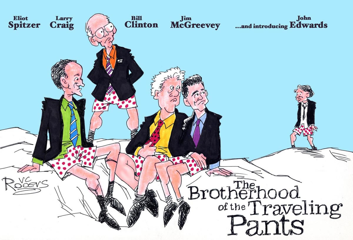 I'll be very surprised if anyone reading this hires me to draw editorial cartoons. It's a very specialized line of work, and the number of potential employers (mostly large daily newspapers) is small and getting smaller. More importantly, it's the one area where a potential client can't tell me what to draw: I choose my own political cartoon subjects and express my own opinions. But I've drawn nearly 3,000 political cartoons since 1977 for the Durham Morning Herald, Spectator Magazine and the Independent Weekly, so I might as well include them on a site devoted to my work.